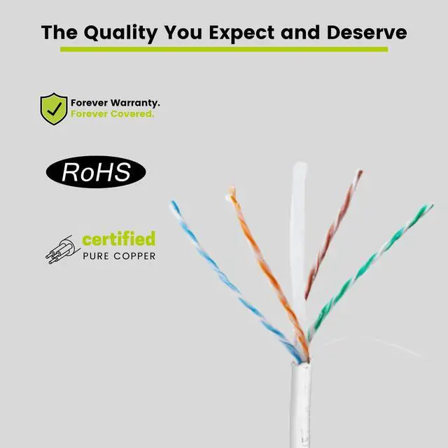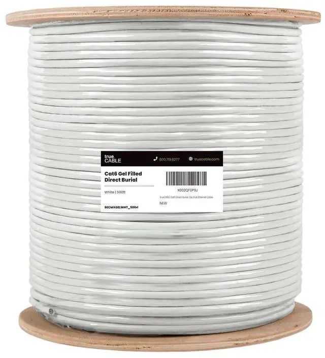 Supports Power over Ethernet: PoE/PoE+/PoE++ (IEEE 802.3 af/at/bt) 4PPoE up to 100W. ^^ [Hassle Free Packaging] 500 feet (152 meters) comes conveniently pre-spooled on a tangle free, easy pull reel so you dont have to worry about getting behind on your next job. ^^ [Solid Bare Copper Conductors] Pure bare copper conductors offer superior signal strength, conductivity, and flexibility compared to cheaper copper clad aluminum (CCA) options. Choose pure copper for a stronger, more reliable connection. ^^ [Direct Burial Rated] Ultra-durable Cat 6 Ethernet cable for direct burial! Gel-filled core ensures complete waterproofing, and the UV-resistant OSP jacket withstands harsh sunlight. Run it underground or in conduit for a reliable connection anywhere. ^^ [ Field Tested, Customer Approved] Our data cables have been tested with a Fluke DSX-8000 Versiv CableAnalyzer and comply with ANSI/TIA 568.2 -E standards, RoHS-3 compliant. Backed by our outstanding customer support.