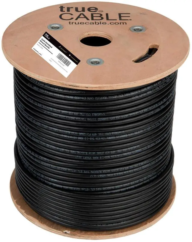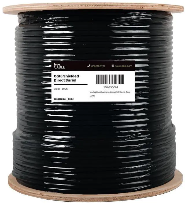 Supports Power over Ethernet: PoE/PoE+/PoE++ (IEEE 802.3 af/at/bt) 4PPoE up to 100W. ^^ [Versatile] Direct burial outdoor Cat6 cable with UV-resistant, OSP jacket. Built to withstand sunlight, dirt, snow, and moisture. Install in the ground, conduit, or outdoors for home or business networks. ^^ [Easy to Use] Pre-spooled on a tangle-free reel with xxxxft of cable for easy, smooth pulls, saving you time and effort on every project, whether youre a professional or DIY user. ^^ [ Field Tested, Customer Approved] Our Cat6 Direct Burial Shielded Ethernet Cables have been performance tested with a Fluke DSX-8000 Versiv CableAnalyzer and are in compliance with ANSI/TIA 568.2 -E standards. Trusted by installers for reliable performance. Backed by our outstanding customer support.