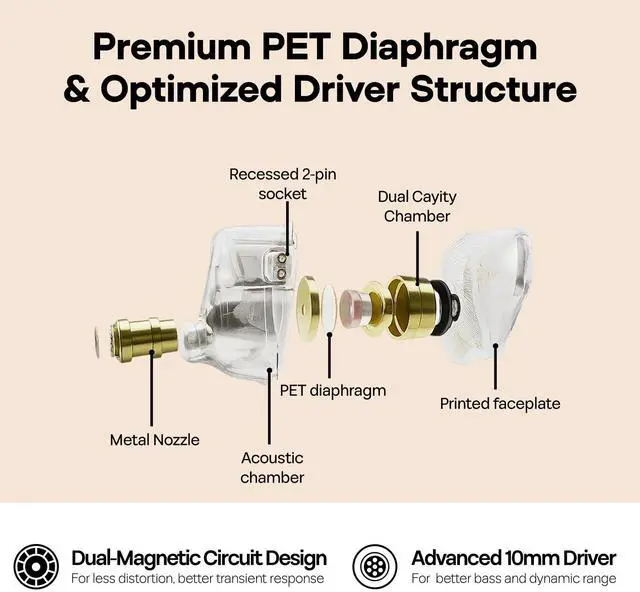 The Aesthetics of Waner S. G IEMAs a brand deeply influenced by Chinese history, TANGZUs newly launched earphone Waner S. G pays homage to the first female premier in China. It is precisely crafted with meticulous attention to every detail. Particularly selected classic white and black color represent Chinese philosophy of Yin and Yang, bringing solemn atmosphere to the first impression while the auspicious clouds pattern on the faceplate reflects superior craftsmanship and prosperity ^^ 10mm Dynamic Driver, Remarkable Performance Equipped with a 10mm single dynamic driver, Waner S. G is eventually launched after 5 times of driver adjustments during tuning development.