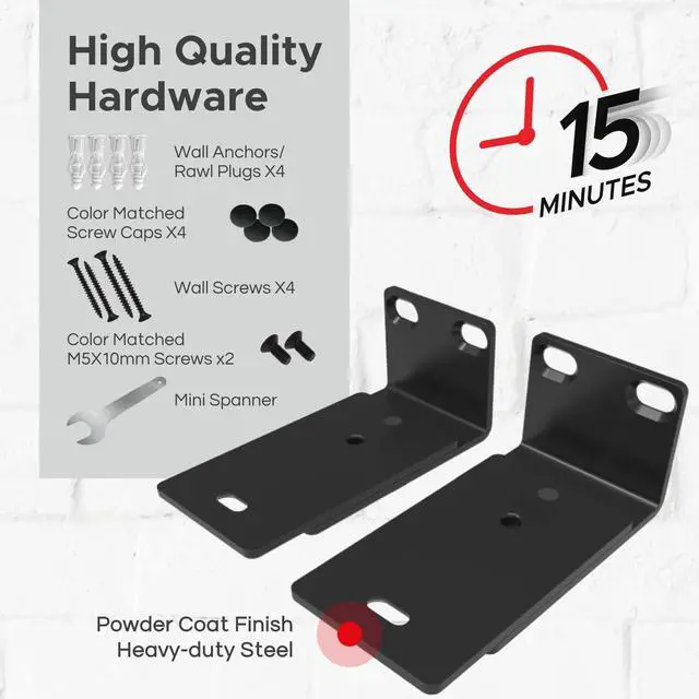 We worked hard using the latest in audio design technology to ensure you get the best possible sound performance from your new BOSE Soundbar Speaker. ^^ PRECISION ENGINEERED - To ensure the easiest installation and the best possible acoustic performance from the BOSE soundbar, the mount is crafted in durable 2.5 mm steel, with a tough color-matched powder coat finish in either black or white to complement your sound bar speaker perfectly. ^^ PERFECT FIT - Our design fits your Bose soundbar speaker in an identical method to the Bose mount, but gives you the adjustability that is not available with the official Bose mount.
