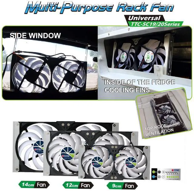 WIDELY COOLING APPLICATION- Great for refrigerator vent fan in your camper van, camper truck, caravan, motorhome, and ventilation cabinet fan in home theater cabinet, audio cabinet, ventilation cabinet, network closet, etc. ^^ FLEXIBLE AND SMART SPEED CONTROL MODE- Auto Temperature Control/ 6-levels manual controller to adjust for particular needs ^^ ALL WEATHER ACCEPTABLE- IP 55 Waterproof &dustproof fan, perfect for outdoor use ^^ EASY INSTALLATION- Rack hook design for easy install on refrigerator vent ^^