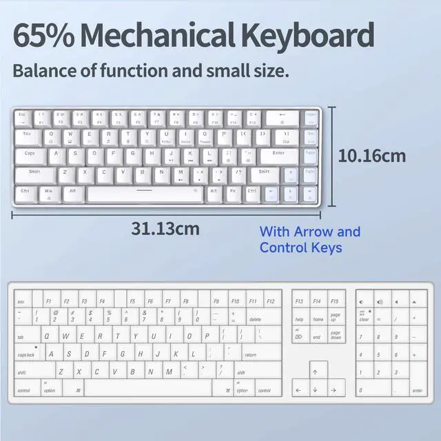 Lightweight and portable 60% keyboard layout: The T68SE mechanical keyboard features a 68-key design, including independent arrow keys and commonly used control keys. The plug-and-play power cord, combined with practicality, complete functionality, and portability, makes it easier for you to immerse yourself in gaming or work.