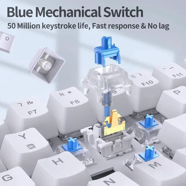 Blue-axis mechanical switches and high-precision optical sensor: The clicky blue-axis switch provides a clicky feel and audible feedback, making it suitable for gamers who prefer a tactile response and enjoy the sound of clicking. The high-precision optical sensor, with a 200-12800 DPI adjustable range and 125-1000Hz polling rate, prov