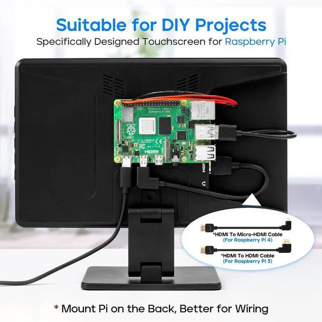 Unique Portable monitor for Raspberry PiRaspberry Pi hobbyist couldnot miss this unique designed Raspberry monitor! Easily mount your Pi to the back of this 7in touch screen monitor. Four corner holes let you mount the small monitor onto your DIY IoT projects that youre working on. This Raspberry Pi display also comes with 2 stands, easy to install and remove, great for on-the-go use. ^^ Plug n Play, Widely CompatibleROADOM 7 inch USB monitor is 100% plug & play. Signal via HDMI port, power&touch via mivroUSB port, drive free.