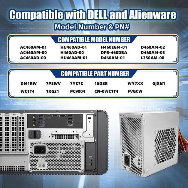 [Suitable Models] HU460AM-01 460W power supply compatible with dell XPS series power supply 8930, 8920, 8910, 8900, 8700, 8500, 8300, 8100, 8000, Alienware Aurora R5 R6 R7 power supply.