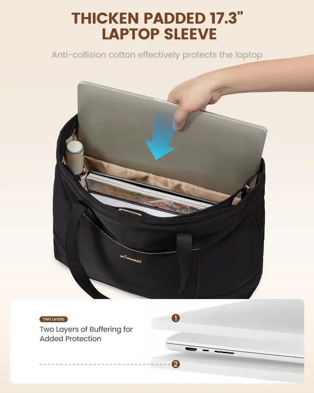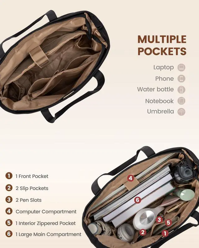 SECURE LAPTOP COMPARTMENT: Equipped with a padded laptop compartment, the work bag for women offers robust protection for your electronics. This ensures that your devices are safely stored, giving you peace of mind whether you're commuting or traveling ^^