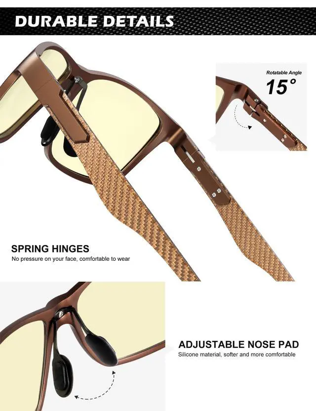 ^^ Premium Temple Material: With superior Al-Mg and carbon fiber composite temple, this type of blue light blocking glasses for men is ultra-light than pure metal frame, also more sturdy. No more worries about broken temples. As more suitable for anyone who often work or play games by the computer, do not miss this pair of practical and classic blue blocker glasses. ^^ Take Care of