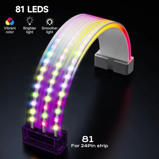 Thin light Board DesignThe RGB light board is used to combine with extension cables and modular cables to form RGB PSU cables to cover the messy and ugly motherboard or graphics card power supply cables, making the chassis look neater and cooler. The soft TPE material and 0.25 in slim design takes up less space, making it suitable for use in customized full-tower, mid-tower, or even smaller chassis to build a professional look ^^ Addressable ARGBSupport ASUS, MSI, GIGABYTE, ASRock and other motherboard addressing software, adjust various lighting modes and dazzling colors, and link lighting effects with compatible devices, including motherboards, graphics cards, RGB fans, and other computer peripherals to create an integrated lighting experience ^^ Three-side Light Effect81 LED light beads, front and side light-emitting design, provide enough brightness, day and night the same streaming light, led beads evenly distributed on the light board, provide uniform and soft light, can be combined 16.8 Million colors to create colorful colors and cool light patterns in your case ^^ Easy to InstallProvide 3 sizes of transparent cable combs, suitable for matching with the original modular cable, silicone modular cable, sleeved cables and 18awg or 16awg extension cables, just put the PSU cable into the clips of the RGB board at both ends, with a transparent wire comb to manage the PSU cables in the middle of the board, connected to the 5v3pin connector of motherboard, hub or the RGB controller can be completed the installation ^^ Packing Include and ServiceIncludes RGB light board for 12vhpwr and 2*8pin single 8 pin PCIE cables, 6 transparent wire combs, an instruction manual, a mini RGB controller; please read the instruction manual before use, if you don't know how to install or have other problems, please contact us, we will solve it at the first time!