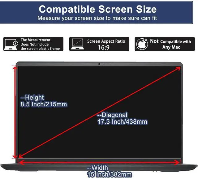 Product Size) --: It is specially designed for 17.3 inch notebooks with an aspect ratio of 16:9 -measure diagonally from one corner of the visual display area to the other without a frame. The filter size (L x width) is 15 inches ( 38.2 cm) x 8.5 inches ( 21.5 cm). To avoid any confusion, please measure the screen size accurately before purchase. ^^ LEAVE NO MARKS BEHIND - Coated with hydrophobic and oleophobic clear layers, the glass protects against sweat and oil residue from fingerprints, keeping your screen spotless all day long ^^ 2.5D ROUNDED EDGE - Precise laser cut tempered glass made with polished, rounded edges. 99.99 % HD Clarity ^^ NO Bubble INSTALLATION - Install the screen protector all on your own! Includes all the tools you need for a super easy installation ^^