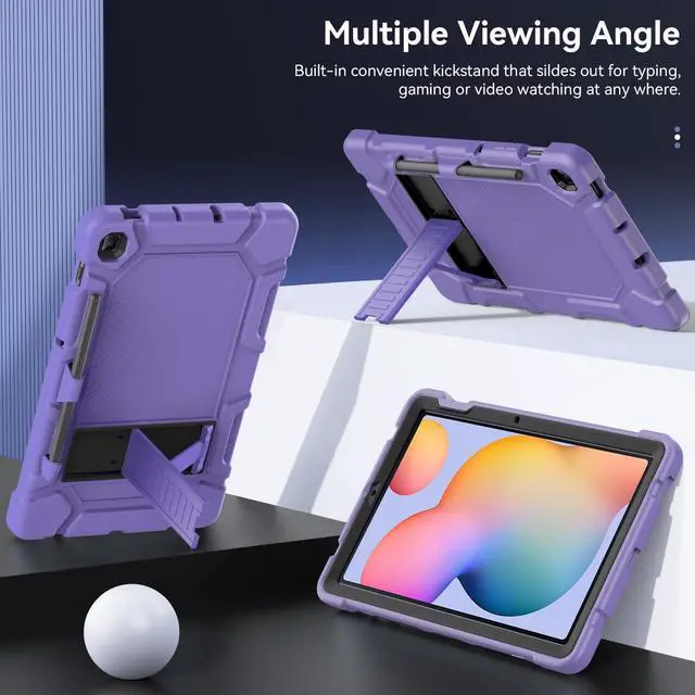 Built-in Kickstand The case for Samsung Tab S6 Lite built-in kickstand provides 2 different angles, which gives you the convenience in watching videos, studying & gaming, etc.