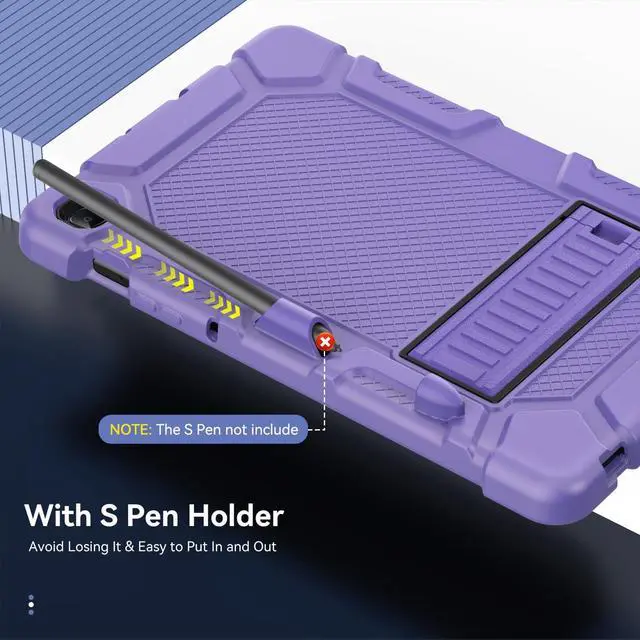 With S Pen Holder Built-in S Pen Holder/Slot. This Tab S6 lite case 10.4'' is easy access to all the controls and features. Perfect cutouts for speakers, cameras, ports. NO S Pen in the package.