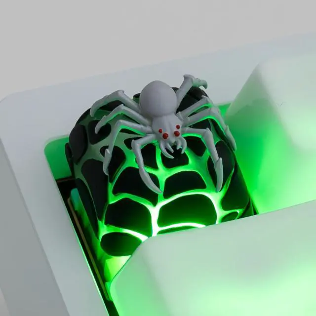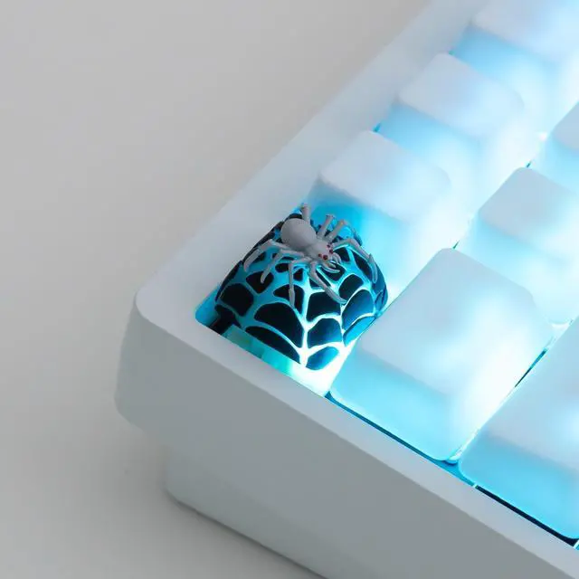 Each keycap is individually handcrafted from durable resin material, ensuring both visual appeal and long-lasting performance. Perfect for gaming setups, custom keyboard builds, or adding a unique touch to your work station. The keycap's design particularly shines when paired with RGB lighting, creating an eye-catching display as the light filters through the intricate web pattern.