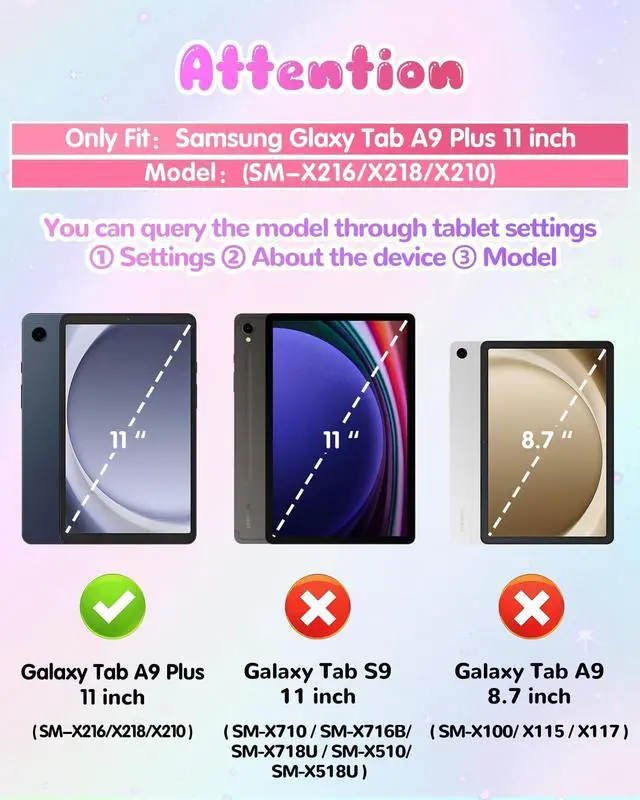 Compatibility with: This is only for Samsung Galaxy a9 plus tablet case 11 inch. Please check your tablet model before ordering ^^