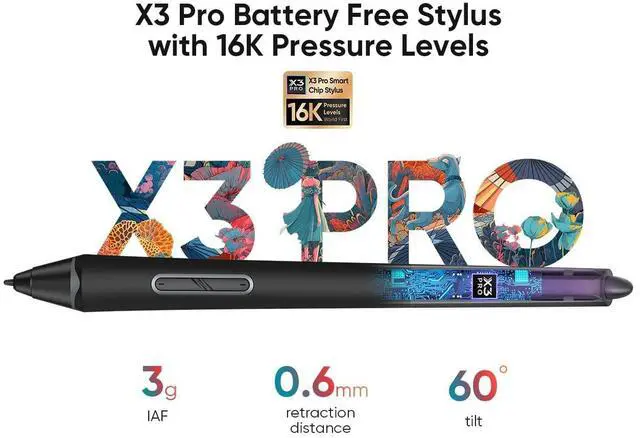 X3 Pro Batteryless Stylus: The upgraded X3 Pro stylus with eraser features 16k levels of pressure sensitivity and a 60-degree tilt function for precise and natural drawing and painting ^^