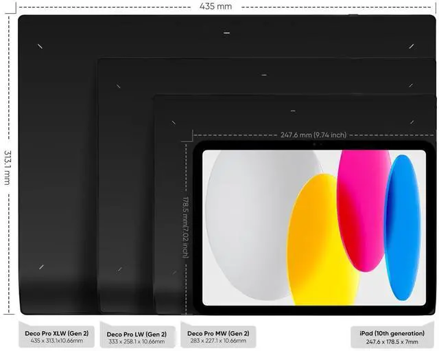 Wireless Freedom: Connect to your device via Bluetooth v 5.0, USB wireless receiver, or wire connection for reliable and flexible use. Deco Pro Gen2 drawing tablet supports two devices pairing simultaneously, switching between them with one click. Large-capacity lithium battery (1000mAh/ 3.7V ) for over 10 hours of battery life.