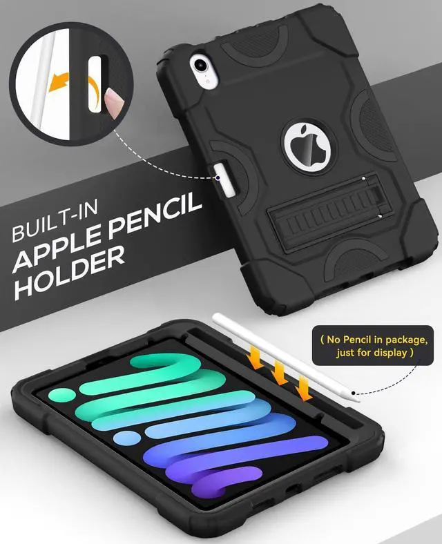 Cantis Case for iPad mini 7 A17 Pro 2024/ iPad mini 6 2021 8.3 Inch, Heavy Duty Shockproof Cover for iPad mini 7th/ 6th Generation 8.3" with Pencil Holder, Black
