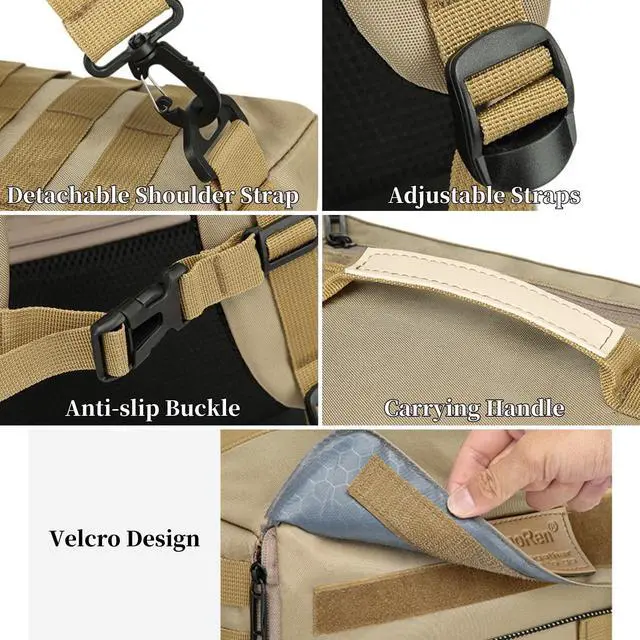 DescriptionThe KEQIKAI 2-in-1 Convertible Travel Backpack redefines adaptability with its dual carrying modes. The detachable shoulder strap lets you switch between ergonomic dual-shoulder support for mountain treks and sleek sling mode for city exploration. Crafted from waterproof 1680D Oxford fabric, it protects belongings from storms while maintaining a lightweight 1kg build ideal for airline carry-ons or daily commutes. The ergonomic airflow back panel minimizes sweat, and the S-curve padded straps reduce shoulder strain during long trips. Organize gear efficiently with a 15.6" laptop compartment, magic tape custom patch panel, and multiple zippered pockets.