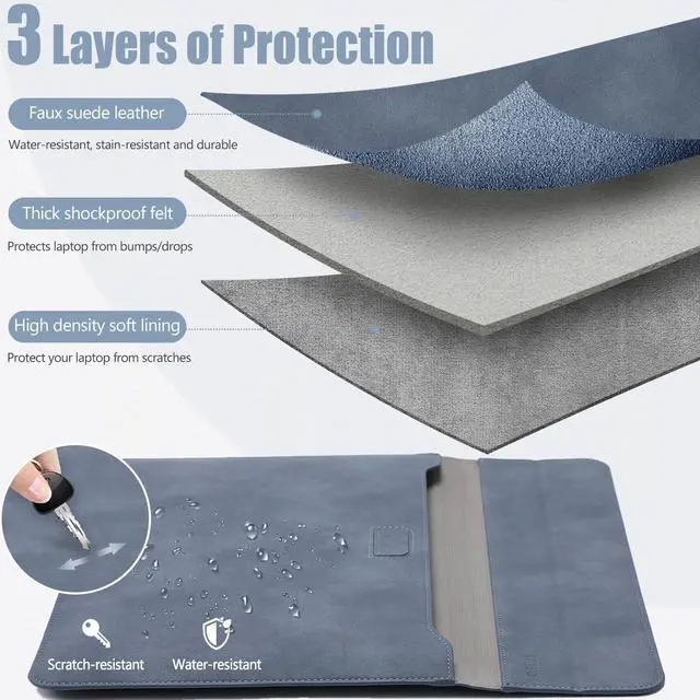 Slim Design: Made of faux suede leather material, water-resistance, shockproof and anti-scratch; Slim design allows the sleeve easily sliding into backpack, perfect for daily use or travel