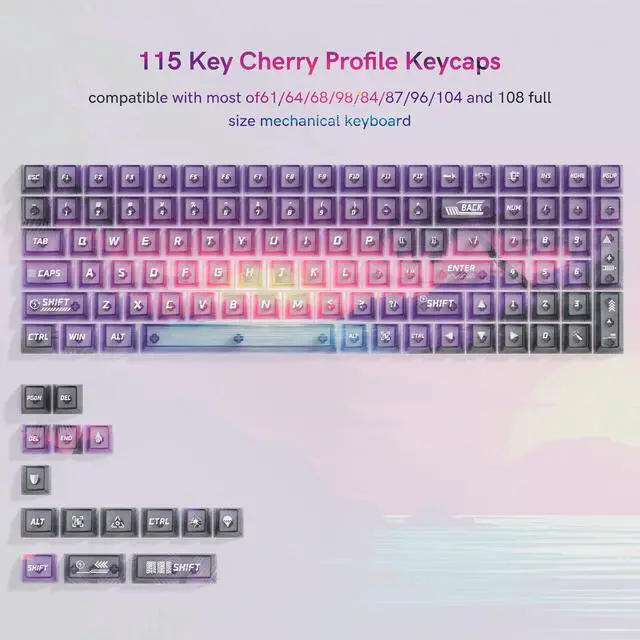 Wide Compatibilit: This keyboard key cap contains 115 keys. It can match most of 60% / 65% / 75% / 80% / 96% / 100% (61/64/68/84/75/87/96/980/104/108) keyboard. ^^ Easy Installation & 24/7