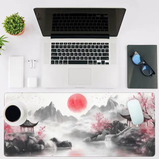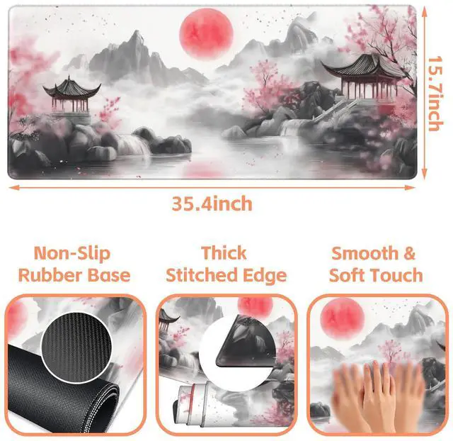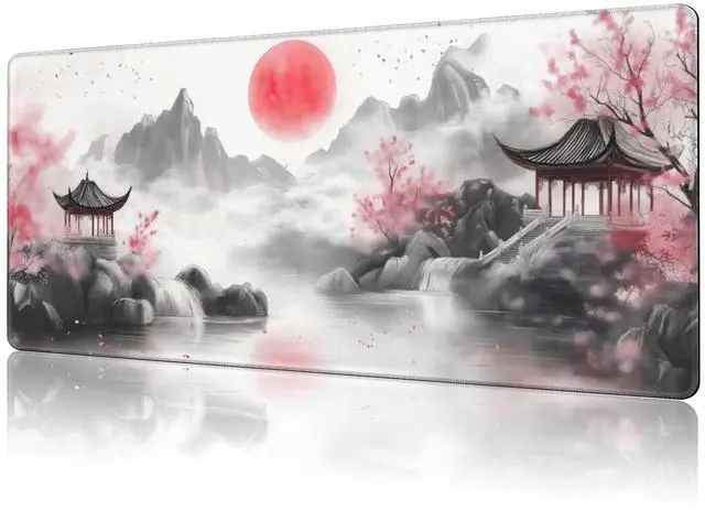 NIYLYNSYN Chinese Landscape Painting Gaming Mouse Pad,Large Non-Slip Thick Stitched Edge Mouse Mat for Home Office Gaming Keyboard Desk Pad (35.4 x 15.7 Inches)