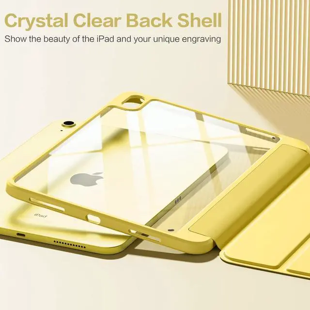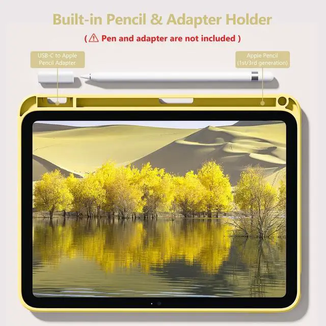 Numbers: A2696/A2575/A2777) NOT compatible with any other devices. To ensure that you have purchased the correct case, please verify the model number "AXXX" in small print on the back bottom of your device ^^ Build-in Pencil & Adapter HolderThis case has a slot for Pencil 3rd/1st generation and the USB-C to Pencil Adapter. You can carry your pen and adapter with your device wherever you go without worrying about losing them. It's also easy to remove the Pencil and adapter from the port (Pencil & Adapter is NOT included) ^^ Precise Cutouts & Full ProtectionDurable PU leather exterior and soft microfiber interior prevent your new 10th gen from being scratched. Hard PC back shell with a flexible TPU frame protects your tablet from drops and impacts. Precise cutouts allow access to all ports and buttons, raised edges enhance screen and camera protection ^^ Crystal Hard PC BackshellTransparent hard back cover shows off the original beauty of the device and your engraving. You can stick favorite stickers to personalize your case ^^ Trifold Stand CoverFeaturing a tri-fold design, the case stands at the perfect angle for typing and viewing, convenient for daily life and work like watching TV, reading, documents editing, etc.