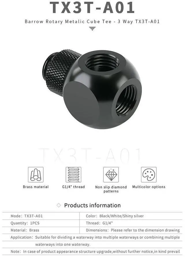 Barrow G1/4" 3-way Ball Fitting, Rotary, BlackFemale G1/4