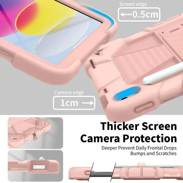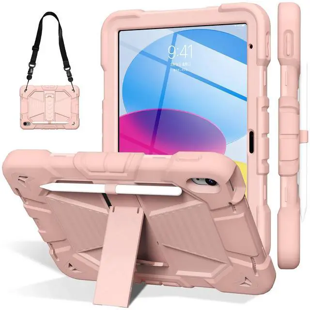 Inch (2022) (Models: A3356/A3355/A3354/A2777/A2757/A2696). Ensure your device model matches for a perfect fit. ^^ Military-Grade Triple-Layer Shockproof ProtectionEngineered with heavy-duty shockproof PC, flexible silicone, and reinforced corners, this rugged cover meets military-grade drop-test standards (MIL-STD-810G). The built-in screen protector and raised edges guard against scratches, drops, and impacts, ensuring ultimate durability for outdoor adventures or kids active lifestyles. ^^ All-in-One Functional DesignFeatures a built-in kickstand for horizontal/vertical viewing, a dedicated pencil slot for Apple Pencil storage, and a detachable shoulder strap for easy portability during travel or outdoor use. ^^ Precise Cutouts & Full AccessibilityStrategically designed openings provide effortless access to all ports, buttons, and cameras without removing the case. Ideal for daily use, gaming, or creative work. ^^ Gift-Ready Packaging & Reliable Customer SupportThis stylishly packaged protective cover makes a practical gift for birthdays or holidays. If you have any questions about this ipad 10th generation case for kids, please feel free to email us, we will provide you with the fastest and best solution!