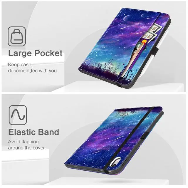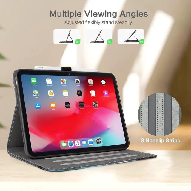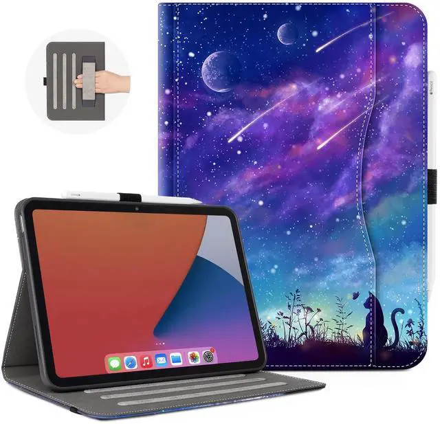 Number: A2696 / A2757 / A2777 / A3162). Premium MaterialMade of reinforced external PU leather dual layer construction and soft internal microfiber lining to give you 360 full protectionSmart Auto Sleep/WakeMagnetic iPad 10th Gen Cover instantly wakes up iPad when opened, and makes it go to sleep once closed (extend battery life). Upgraded Anti-slip StripesWith three anti-slip stripes, you can adjust it to multiple stable angles, holding up great for viewing, video watching and reading at home, or presenting at your meeting. Hand StrapBuilt-in hand strap, coupled with an elastic band to keep the case OPEN, give you a comfortable single-hand use experience. External Elastic BandWhen you don't use it, strap help you more firmer to fix your ipad. Do not have to worry about loss and loose. Front Document PocketDocument Pocket is designed for you to store your business cards, Cash, bank cards, notes or bills while going outside. Pencil HolderStylus Loop is more convenient save your Apple Pencil.
