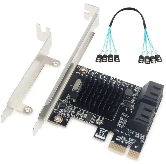 ^^ Hot-Swap & User-Friendly Design Hot-swap support allows drive replacement without shutdown. Low-profile bracket fits compact cases and avoids GPU airflow blockage, ensuring hassle-free maintenance and space efficiency. ^^ Complete Kit, Ready to Install Includes a 4-port SATA III data cable and low-profile bracket. No extra purchases needed just plug into your PCIe slot and connect drives!