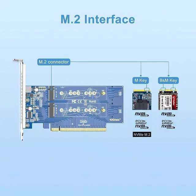 High Compatibility: 4 Ports M. 2 NVME to PCIe 3.0 Adapter supports PCIe M. 2 (M-Key) SSDs (NVMe and