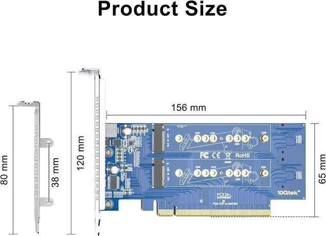 AHCI): 2230, 2242, 2260 and 2280 drives. Motherboards and BIOS MUST support bifurcation otherwise only first drive can be recognized.