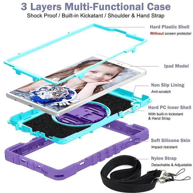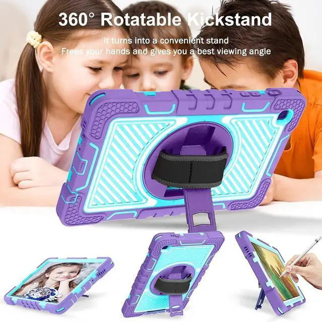 Hand Strap: The 360 Rotatable adjustable hand strap makes you hold or use your tablet easily in all directions. 3. Shock Absorbing and
