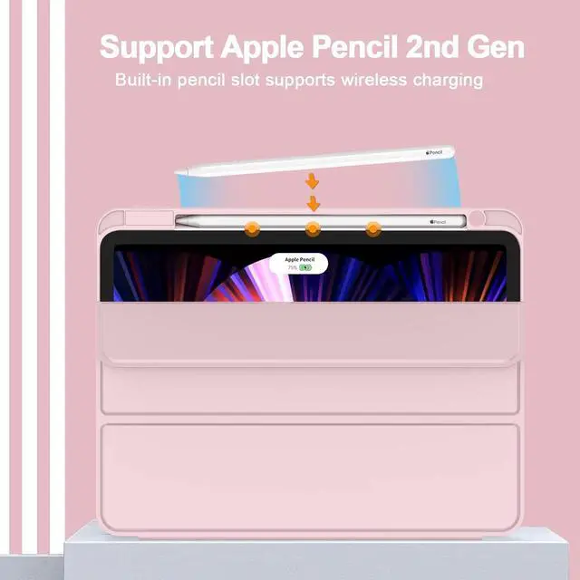 [Compatible with iPad Pro 11 inch 2022/2021/2020] Protective case for iPad Pro 11 inch 2022/ 2021/2020 released tablet, NOT compatible with any other iPad models. Please check back bottom of your iPad to find the model number. ^^ [Designed for Apple Pencil's Magnetic Attachment] - Built-in Apple Pencil holder, compatible with the Apple Pencil's magnetic attachment and charging features (Apple Pencil is NOT included). ^^ [Support Touch ID and Auto Sleep/Wake Feature] Magnetic smart cover supports auto wake /sleep function. Powerful magnet secures the case closure, easy to snap on and off.