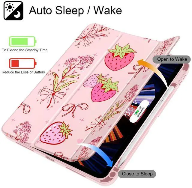 • Auto Sleep/Wake: Built-in magnetic strip, automatically wakes or puts your tablet to sleep when the lid is opened and closed. Protects and extends battery life. Powerful built-in magnets ensure a strong lock between the case & iPad.