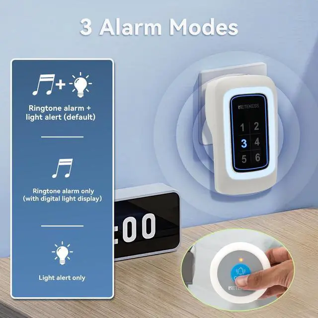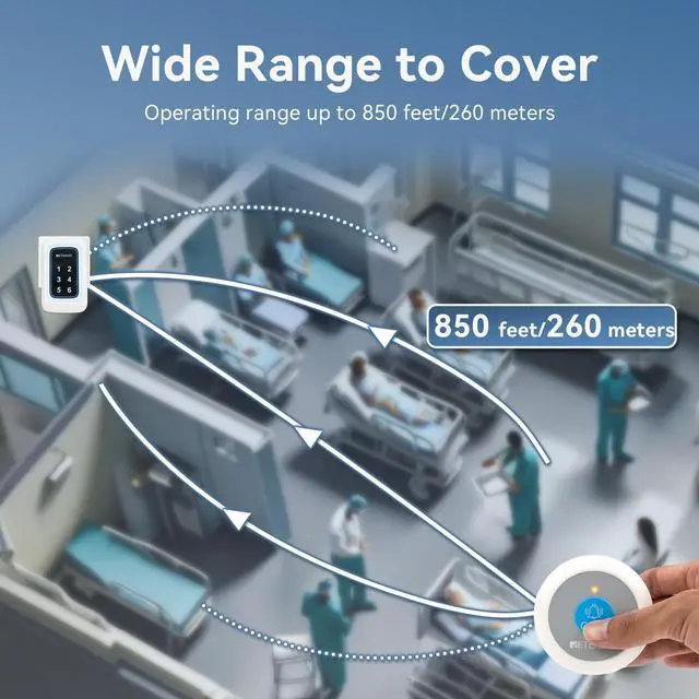 Wireless and easy to install; just deploy the life alert systems for seniors; and then press the call button anywhere in your home; hospital or clinic to immediately send out an emergency alert ^^ 850-Foot communication range; designed specifically for individual families or small medical and elderly care institutions; even in buildings; garages; basements or bathrooms; the caregiver pager can maintain a highly stable signal ^^ Low battery alert; if the indicator light of the call button flashes without pressing the button; it indicates that the battery is too low; the call button with low battery reminder makes care simpler ^^ IP67 Waterproof button; alert button for seniors at home is made of waterproof design; which can be used by the elderly; children; pregnant women; disabled people; and patients in the bathroom ^^ 18 Ringtones and 5 volume levels; life alert systems for seniors no monthly fee has flexible volume and melody settings that can distinguish urgency levels; It is a good helper for the elderly; the sick; the disabled; pregnant women and children