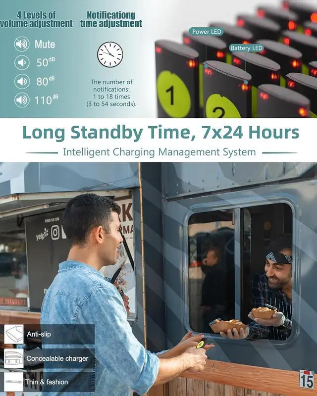 MULTIPLE SCENE APPLICATIONS: Wireless paging system applied to restaurants, hotels, food trucks, bars. We provide lifetime technical support. If you have any questions, please contact us