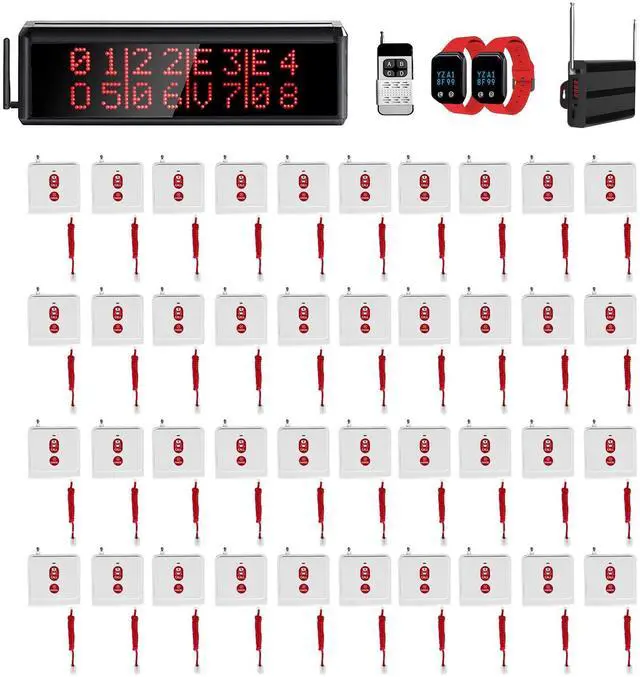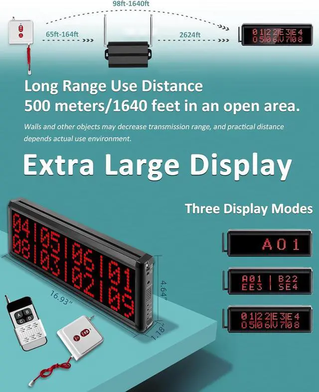 EXTRA LARGE DISPLAY: This display pager system has a large display, the size of the display screen is 16.93 x 4.64 x 1.18 inch. Can support external active speakers, no longer worry about customers not hearing it ^^