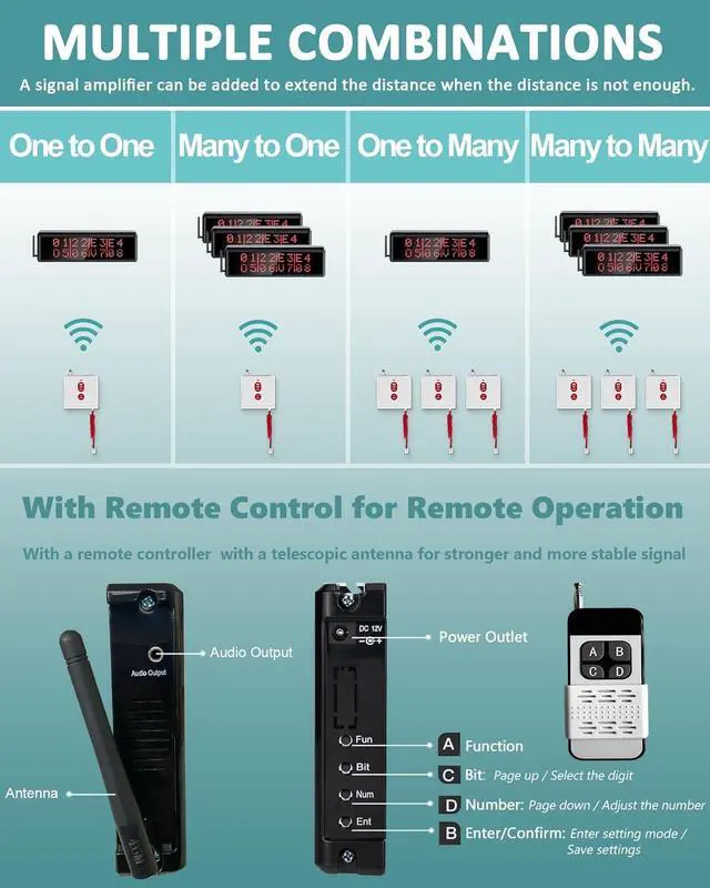 TYPES OF DISPLAY: Support a variety of displays (single group / 4 groups / 8 groups) and the display mode can be adjusted according to actual needs. Standby with date and time display. This system has 6 different prompt tones ^^