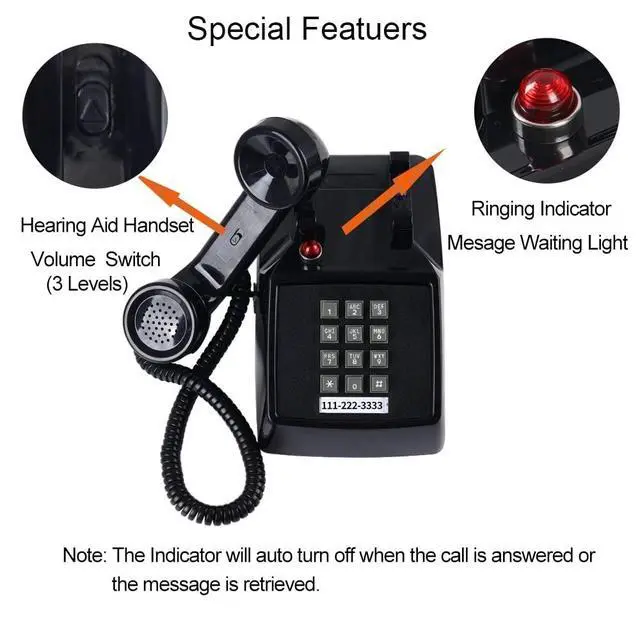 So you can freely make and answer calls in long distance. ^^ Never Miss Any Call & MessageThe vintage old analog desk telephone owns comfortable ear cup and red indicator, which will auto flash when there is call or message, helps you Never Miss Any Important Calls and Messages. ^^ Hearing Aid, Gift for ElderThe old fashioned corded desk landline telephone enjoys classic design, large buttons and hearing compatible handset, so this basic desk phone is good choice for Elder Persons, who are hard of hearing or not used to operating cell phone.