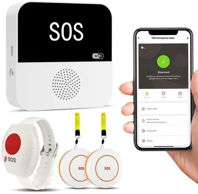 Design: The receiver connects to home Wi-Fi ( 2.4G only) for smart global access. Includes 2 call buttons + 1 wearable Wristband panic button (on-the-go). 230ft range through walls. Ideal for homes, hospitals, and nursing facilities ^^