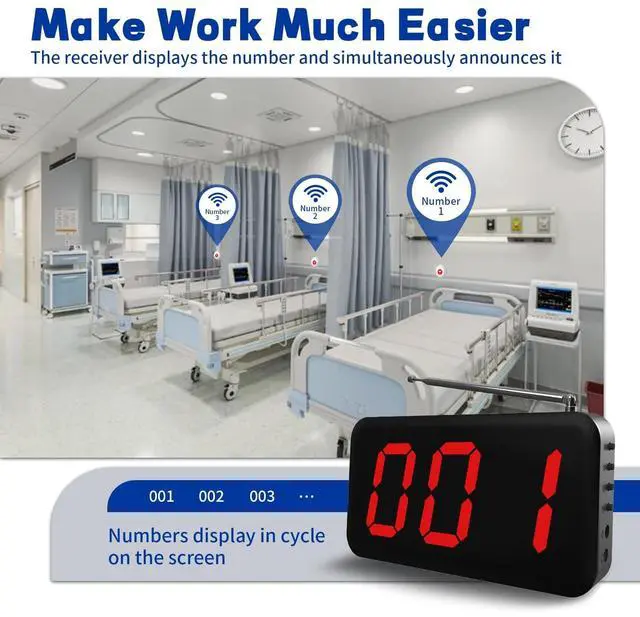 LED Display: The bright 3-digit LED display clearly shows the call button number instantly. This pager system helps caregivers quickly identify who needs assistance, reducing missed calls and improving response time in busy environments. ^^ Custom Alerts with