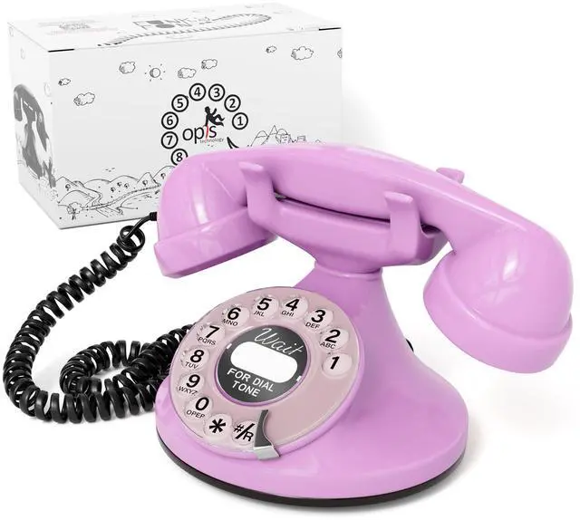 • MODERN COMPATIBILITY, RETRO STYLE: Embrace the past with the Opis FunkyFon, a vintage landline phone. Its real rotary dial telephone offers double-speed dialing for seamless compatibility with modern home phone lines. Unlike old phones vintage, this retro house phone includes an electronic beeper and vibrant colors, making it a functional vintage telephone for any contemporary home.