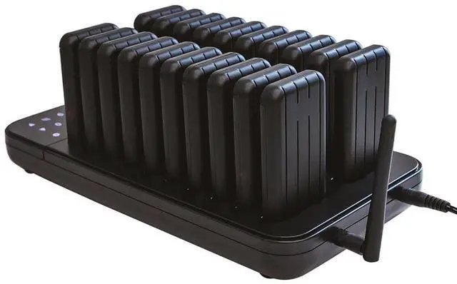 The clear plastic cover is much stronger than normal plastic cover. Paper sticker can be put behind it, so customers can't scratch it off like normal pagers. ^^ WIRELESS REMOTE CONTROL- The external antenna creates a high sensitivity to enable the transmitter to call pagers clearly and correctly. The paging range is 500 meters / 550 yards. ^^ LONG BATTERY LIFE- Each wireless pager has a built-in 3.7V 200mAh rechargeable battery. The continuous working time is about 24 hours after a full charge.
