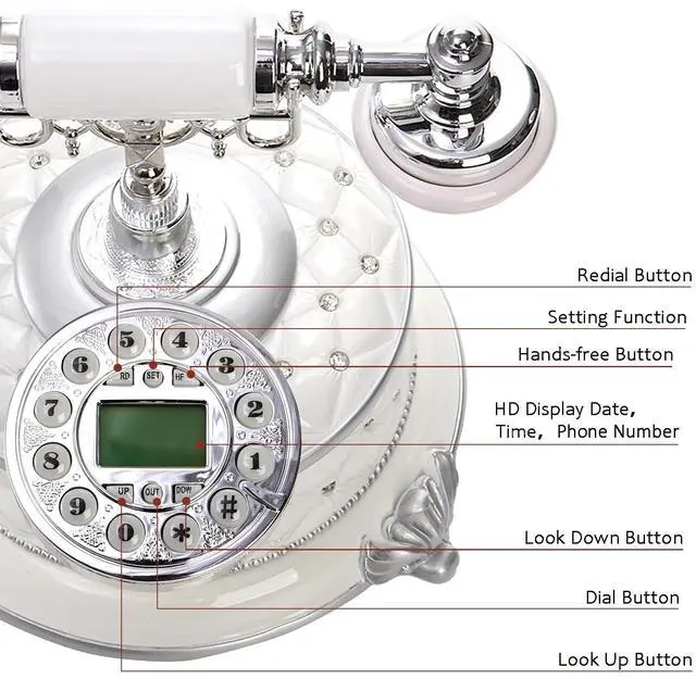 Style Appearance: This elegant white desk telephone combines vintage and modern luxury appearance, adds a great touch to any desktop decoration, suitable for home, office, luxury, star hotels, galleries, jewelry firms to improve the grade and taste.