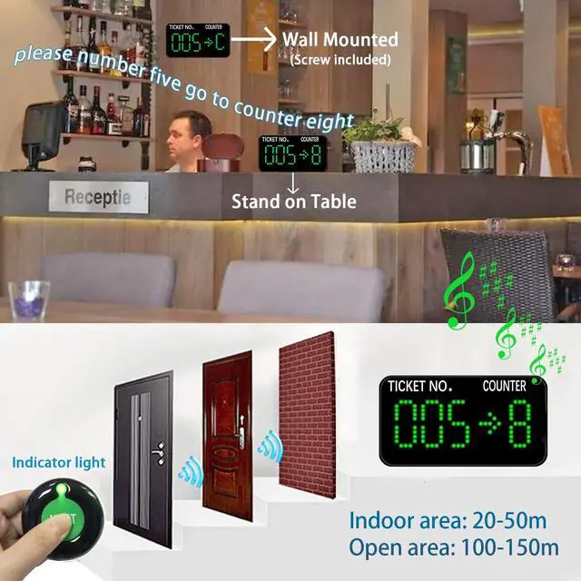 Take a Number Display: The display receiver can be mounted on a wall or de