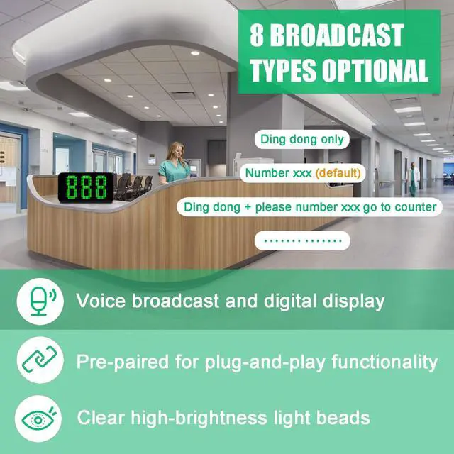 Multi-Function Number Display The dot-matrix led display can be mounted on a wall or desktop. Its voice mode, volume and number of prompts can be adjusted. The default voice is "Number XXX", you can choose a voice reminder with only a ding-dong sound (no number is broadcast)