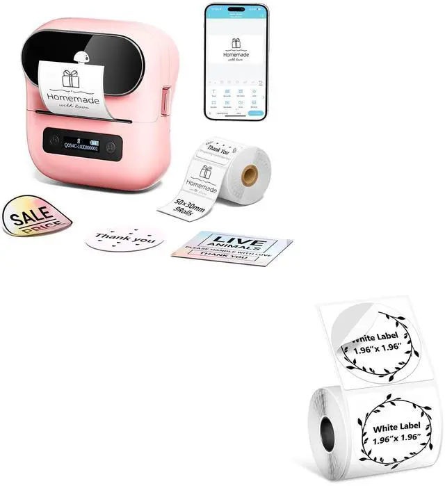 Phomemo M220 Label Maker & 1 Roll White Thermal Labels, 1.96" x 1.96" (50x50mm)