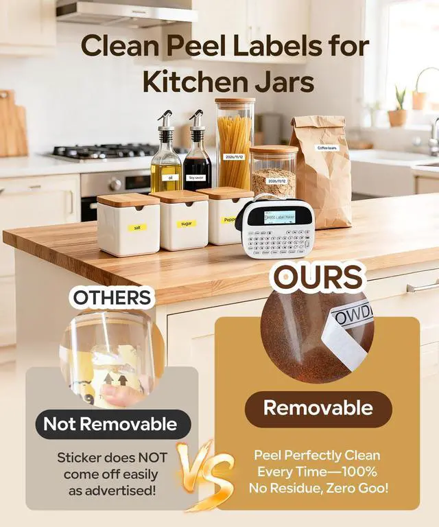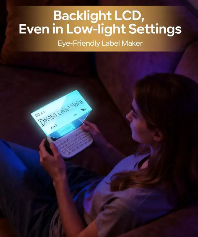 (-): Equipped with a 1200mAh battery and USB-C charging, this label maker offers portable all-day printing ^^ -: Label Maker features a bright backlit screen for clear editing in any lighting. Create crisp labels effortlessly for home, office with intuitive controls and portable design ^^ -: M950 label maker machine with 12mm 0.47 inch waterproof tape, our authentic tapes are tear-resistant, providing durability and ensuring that they won't easily rip or tear during use ^^: Our label maker lets you create personalized labels via app! With thousands of fonts, borders, and icons, design