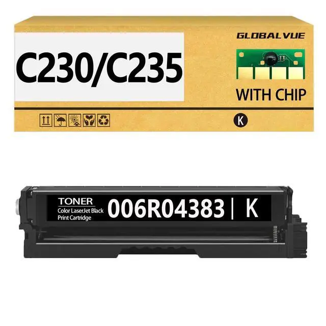 GLOBALVUE C230 C235 (006R04383) Black Toner Cartridges 1 Pack (with Chip) Compatible with Xerox C230 C235 Toner Cartridges for Xerox C230 DNI C235 DNI Color Multifunction Printer