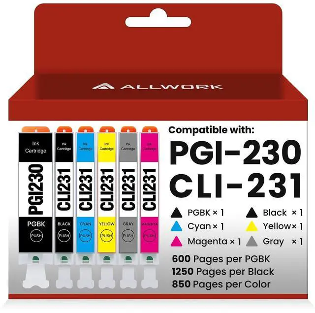 Contents: Compatible Ink Cartridge for 1 x PGBK 230, 1 x Photo Black 231, 1 x Cyan 231, 1 x Magenta 231, 1 x Yellow 231, 1 x Gray 231 ^^